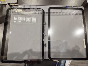 液晶にガラス片が刺さってしまうと別の場所に影響が出てしまうので、慎重に開封します。