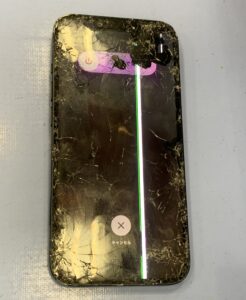 こちらの端末、画面だけでなく背面も損傷が激しく外側に見えている部品はすべて交換となります。