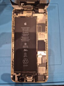 画面を開けてバッテリーを外していきます。古い端末ほど経年劣化で破損してしまうリスクがあるため慎重に行います。